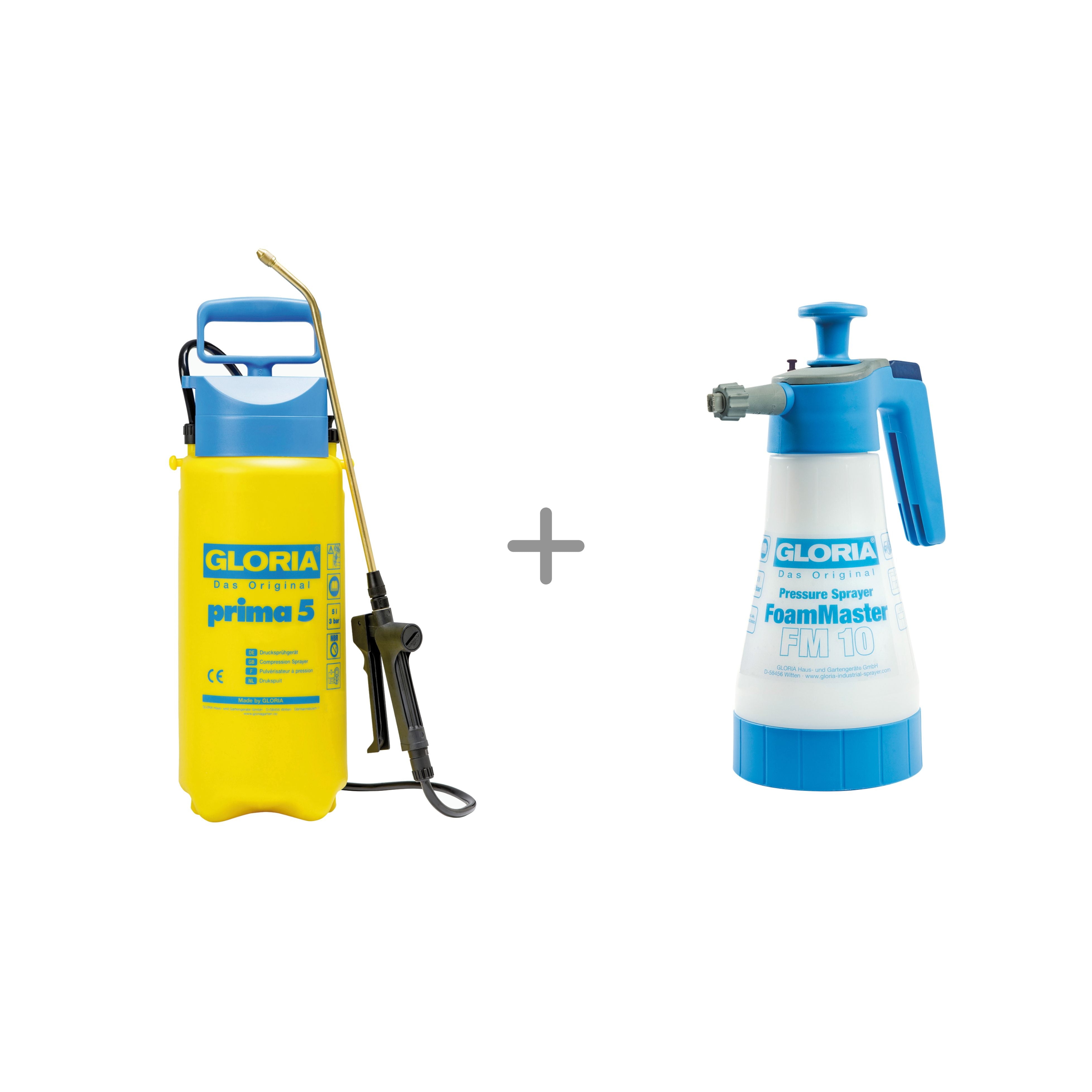 Dieses Bundle enthält 2 Produkte für Pflanzenpflege und Reinigung: den bewährten Drucksprüher prima 5 für effiziente Pflanzenschutz- und Pflegemittel sowie den FoamMaster FM 10 für kraftvollen, haftenden Reinigungsschaum. So kombinieren Sie präzises Sprühen mit gezielter Schaumreinigung – ideal rund ums Haus, im Garten, an Fahrzeugen, Gartenmöbeln, Grill & Co.